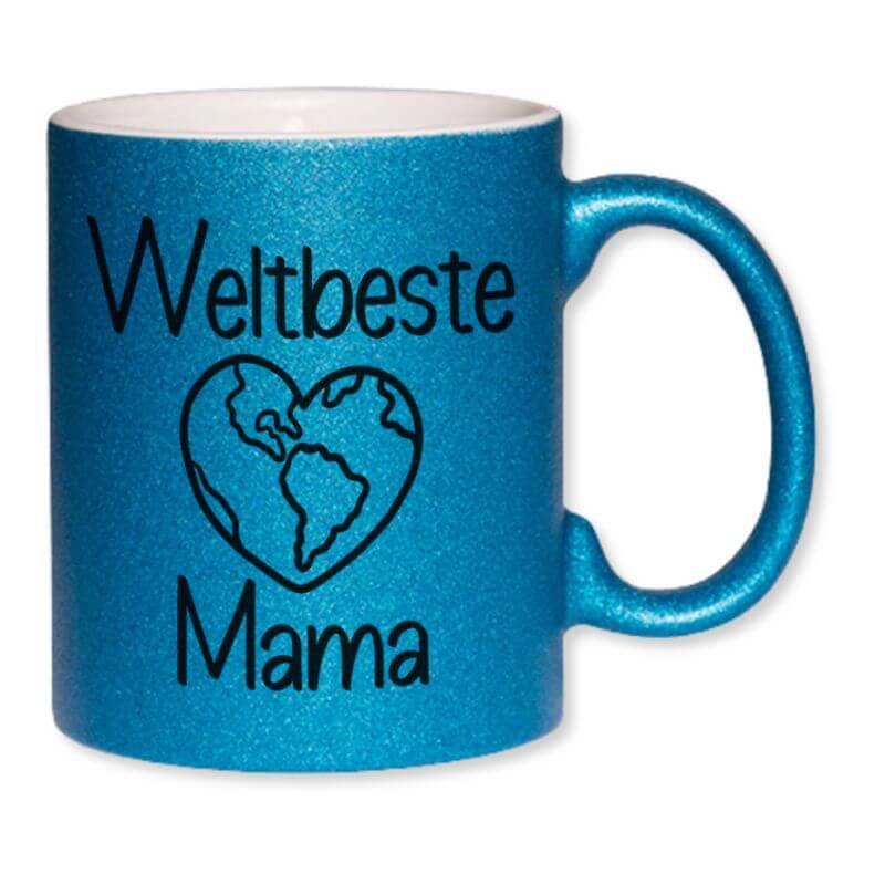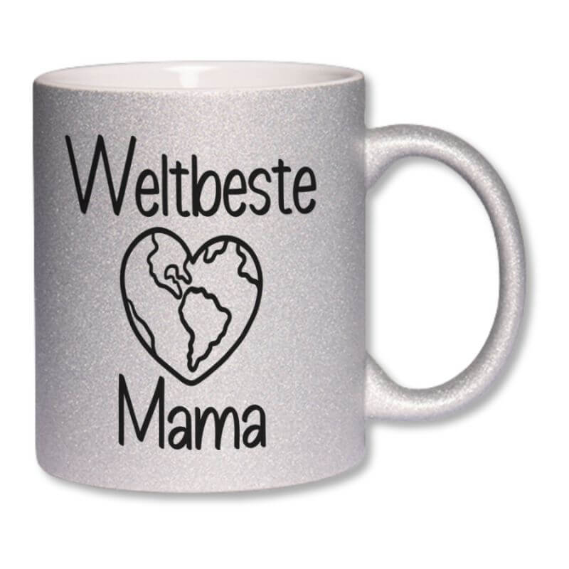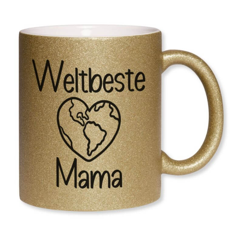 Glitzernde Keramiktasse mit Aufdruck „Weltbeste Mama“