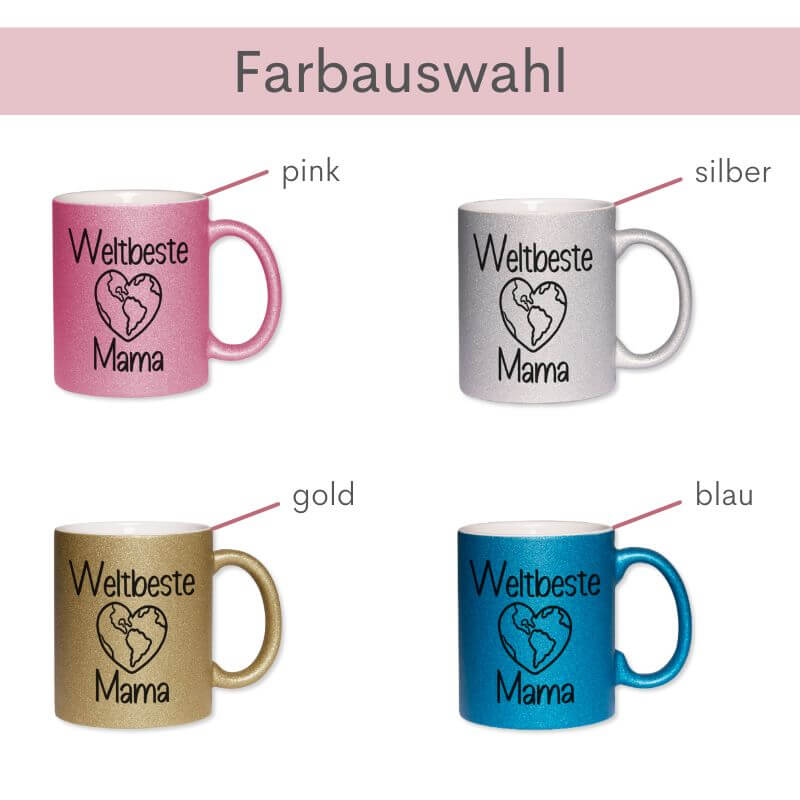 Zeig deiner Mama, wie viel sie dir bedeutet – mit der Glitzertasse „Weltbeste Mama“.