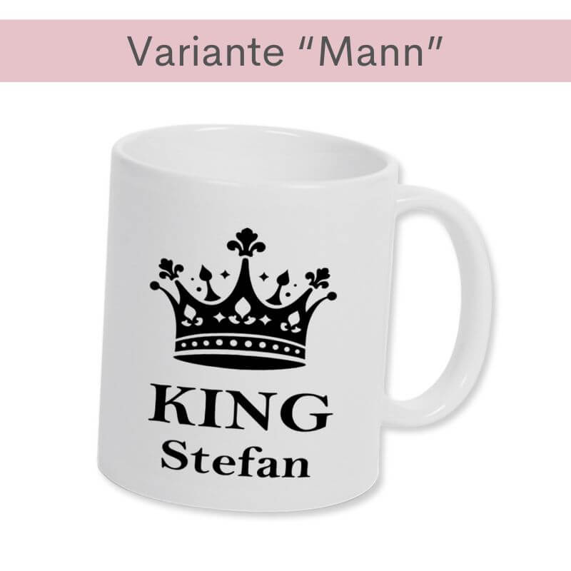 Produktname: Partnertassen „King und Queen“, inklusive Personalisierung