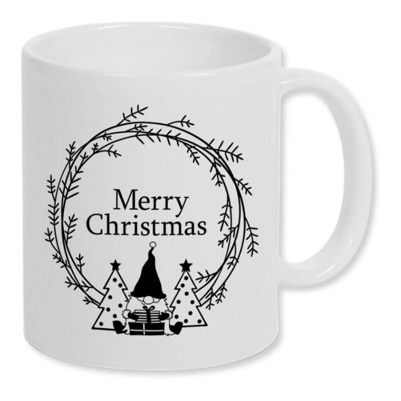 Keramiktasse mit Wichtelmotiv und Schriftzug “Merry Christmas”