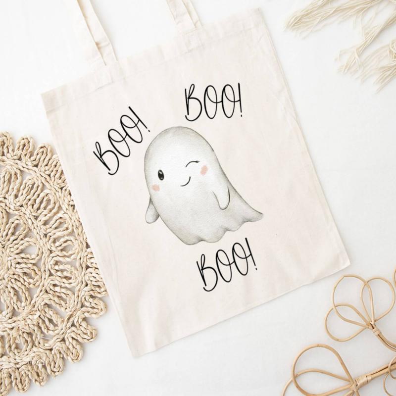 Baumwolltasche zu Halloween mit niedlichem Gespenst in 2 Varianten