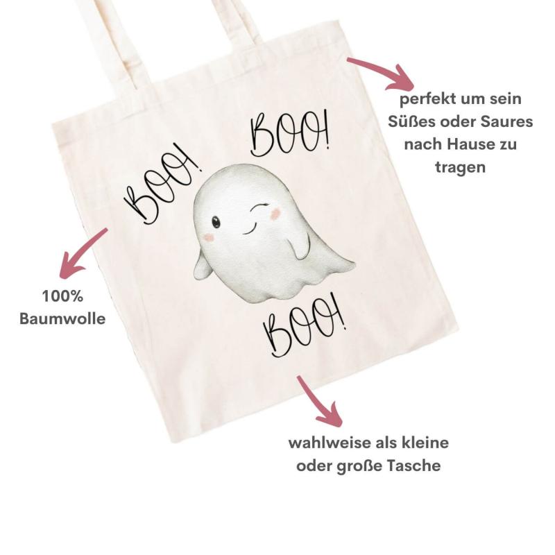 Du möchtest deinem kleinen Geisterjäger eine besondere Überraschung zu Halloween bereiten? Dann ist unsere Baumwolltasche mit einem Gespenst die perfekte Wahl!